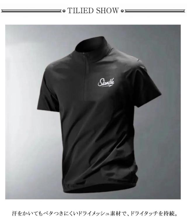 メンズ スポーツウェア モックネック ギフト ハーフジップ Tシャツ ポロシャツ 涼しい ドライ 夏 半袖 吸水速乾 UVカット トップス 通気性 作業着 半袖ポロシャツ 夏 春 父の日 ゴルフウェア