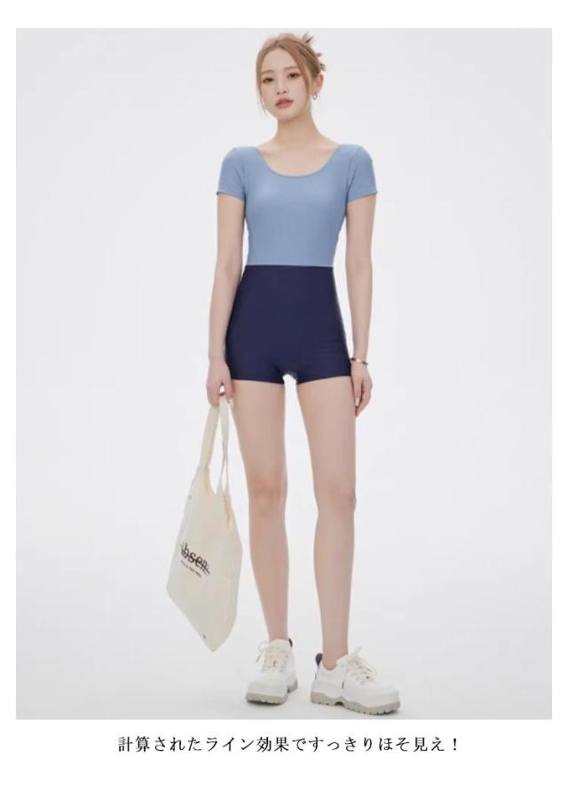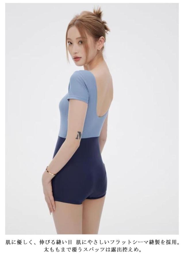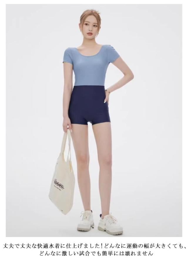 | シンプルでおしゃれ♪スタイル良く見えるフィットネス水着。 肌に優しく、伸びる縫い目 肌にやさしいフラットシーマ縫製を採用。太ももまで覆うスパッツは露出控えめ。 計算されたライン効果ですっきりほそ見え! 丈夫で丈夫な快適水着に仕上げました!どんなに運動の幅が大きくても、どんなに激しい試合でも簡単には壊れません | |
