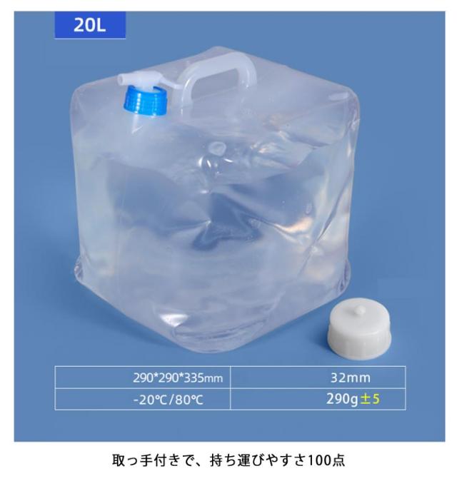 | 2個セット 20L 15L 蛇口付き 持ち歩くオアシス 薄型で強力、密封は完璧 使いやすいグッジョブ蛇口 取っ手付きで、持ち運びやすさ100点 片付けやすい!収納時存在感ゼロ 薄いけど強靭な強さを持つ強化ポリエステルを特殊な加工技術でつなぎ合わせました | |