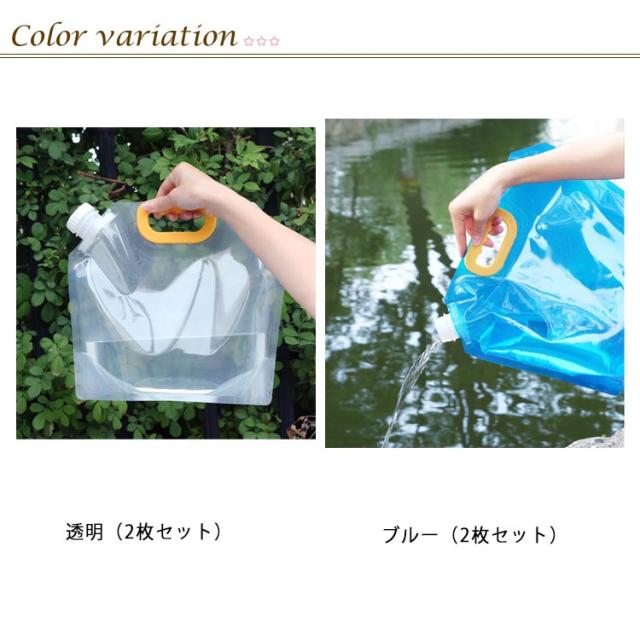 | 2枚セット 10L 防災タンク 広口タイプで使いやすい 丈夫な素材を使用。使用しないときは折りたためて持ち運びや収納するときにも便利 直径約3.5cmの広口キャップでスムーズに水を注ぐことが可能 マチがあり、水を入れると重さで自立可能! | |