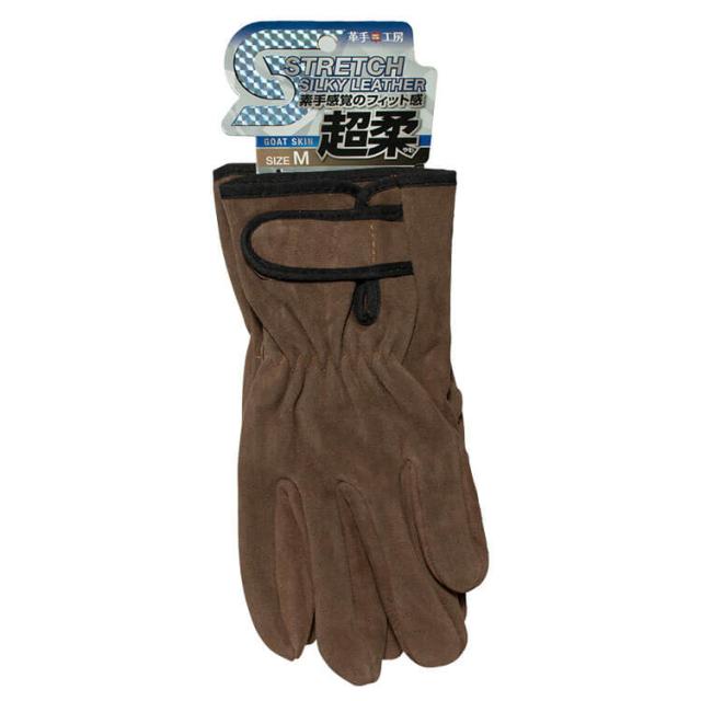 作業用手袋 山羊革 KS891-BR ストレッチ シルキーレザー 手首ベルト ユニワールド 5双組
