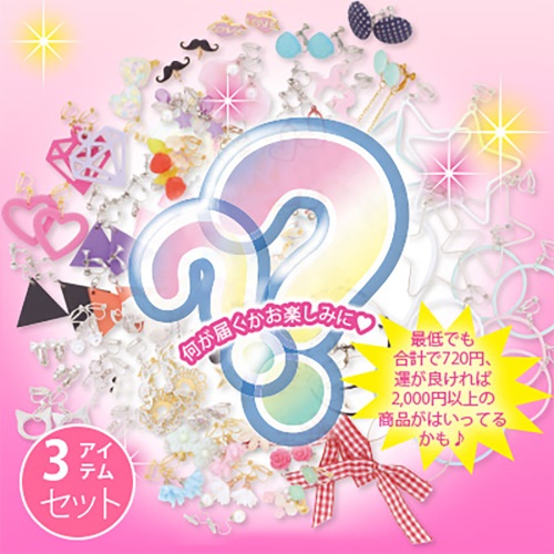 大きめトップ、シンプルトップ、じゃらトップを各1ペアずつお届け!最低でも合計720円、運が良ければ2,000円以上の商品がはいっているかも♪
