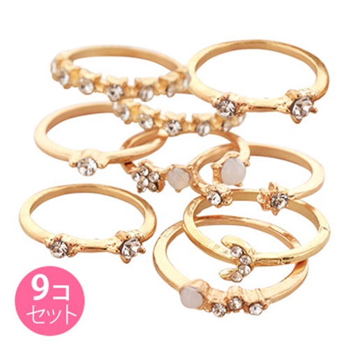 【送料無料】 ストーン付きサイズ形いろいろ華奢リング (9個セット) (ゴールドカラー) / SUNHOSEKI