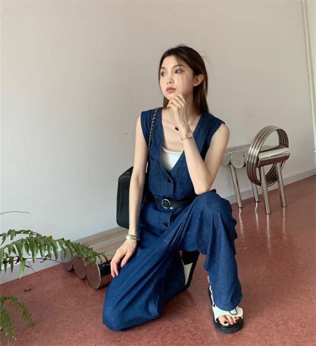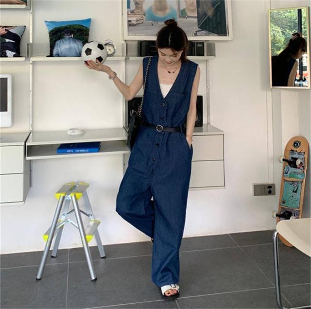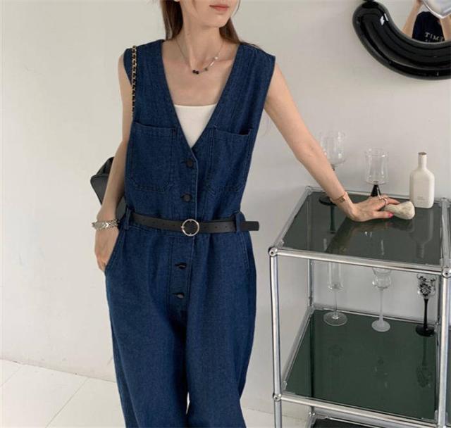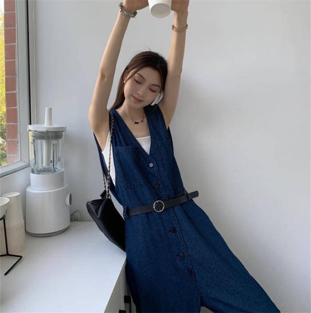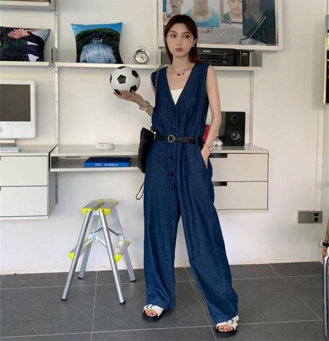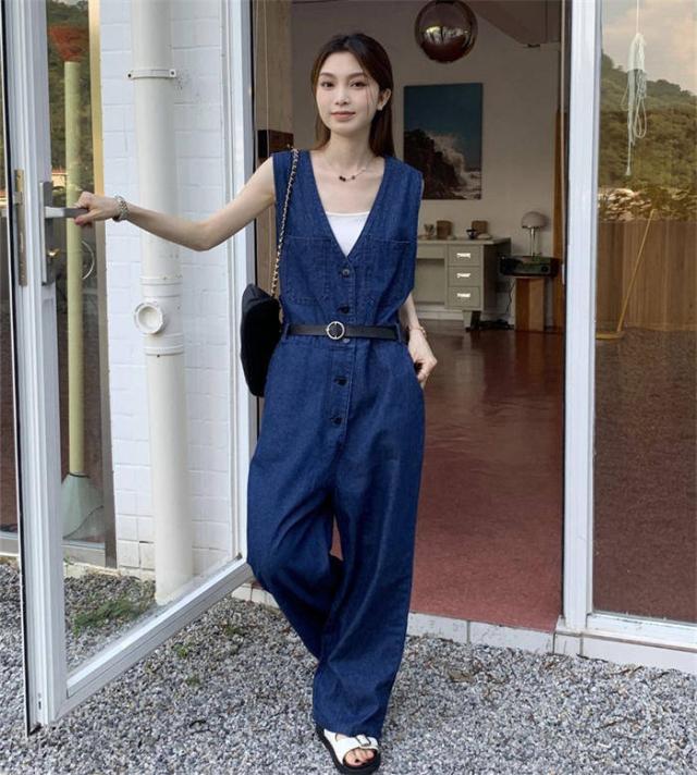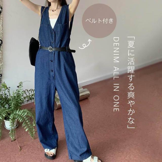 デニム サロペット レディース パンツ レディース デニム サロペット 大きいサイズ レディース サロペットパンツ ワイドパンツ 大人 ノースリーブ オールインワン 夏 ベルト付き
