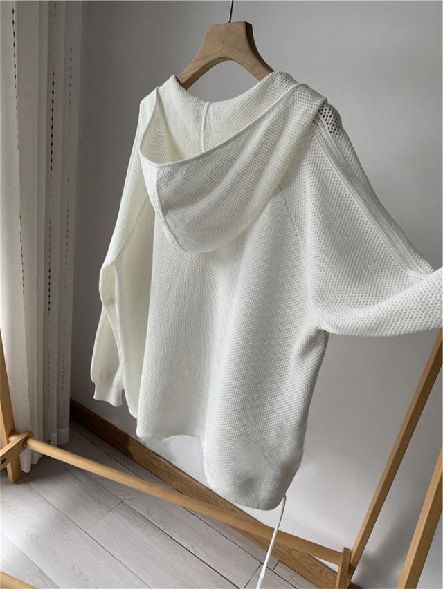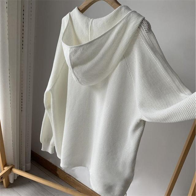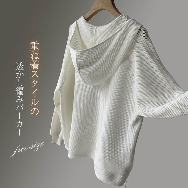 キーワード 透かし編み ニットパーカー レディース パーカー 春 秋 ニット パーカー フード付き おしゃれ プルオーバー カットソー トップス ニット フードパーカー 長袖 リラックス 着回し 定番 シンプル 大きいサイズ 透け感あり 重ね着 ゆったり 春秋物 部屋着 20代 30代 40代 50代 白 ホワイト 送料無料