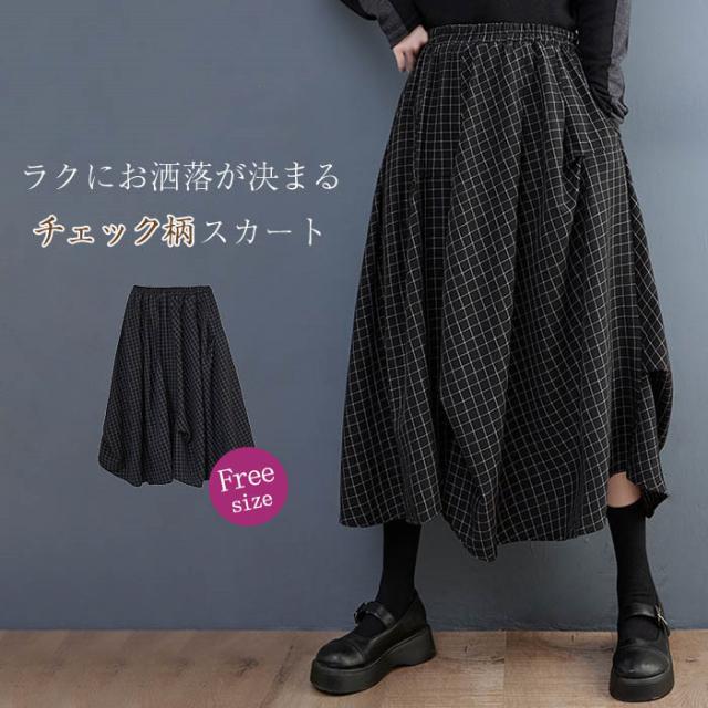 キーワード アシンメトリー スカート レディース ナチュラル 大人 チェック 個性的 綿麻調 スカート 春 ロング スカート ロングスカート 定番 ウエストゴム 大人 ボトムス カジュアル おしゃれ オリジナル 体型カバー 着痩せ aライン 通勤 ボリューム チェック柄 着回し 30代 40代 送料無料