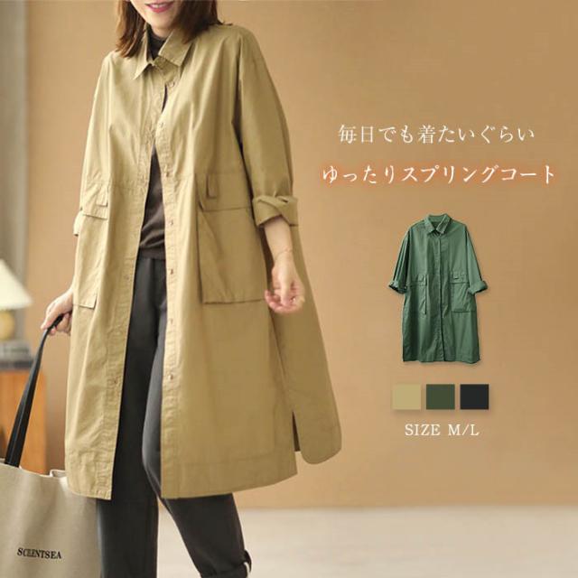 キーワード スプリングコート レディース トレンチコート 薄手 春 秋 春コート 脇スリット 春物 春服 無地 ロングコート トレンチ コート ロング丈 羽織り 大きいサイズ カジュアル ゆったり 体型カバー 上品 通勤 オフィス シンプル 30代 40代 50代 黒 ブラック 緑 キャメル 送料無料