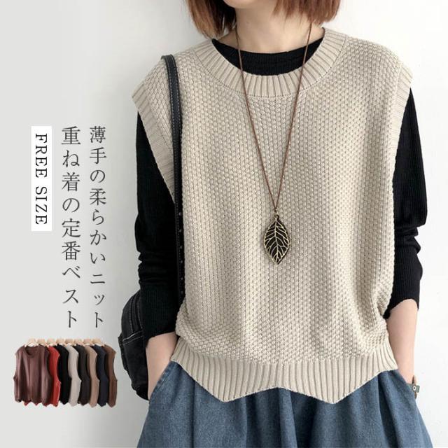 ニット ベスト レディース 春 プルオーバー サマー ベスト レディース 春秋 ニットベスト おしゃれ 着回し トップス 体型カバー ノースリーブ シンプル