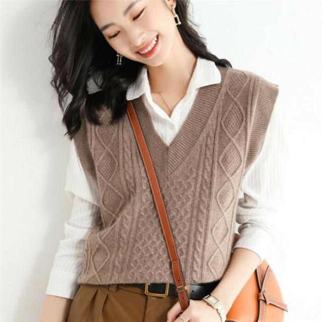 ケーブル編み ニット ベスト レディース 秋 サマー ベスト レディース ニットベスト ケーブルニット ベスト プルオーバー おしゃれ ベスト vネック