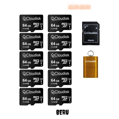 Cloudisk Micro SDカード64 GB(10個セット) フラッシュカード Class10 A 2 U 3 Micro SDXC、SDアダプタ、カードリーダー(64 GB