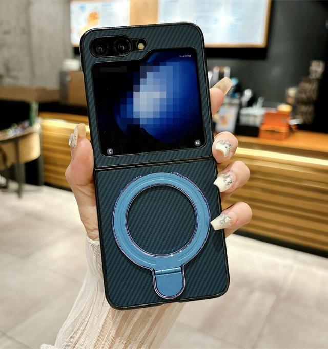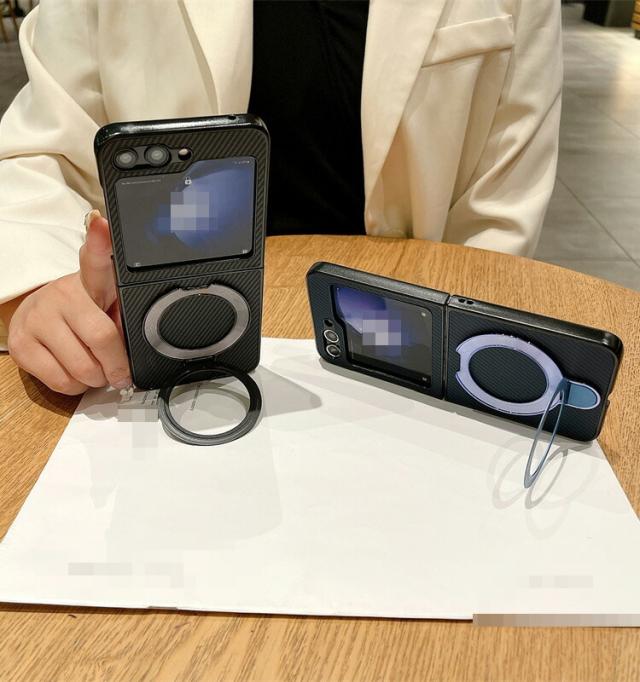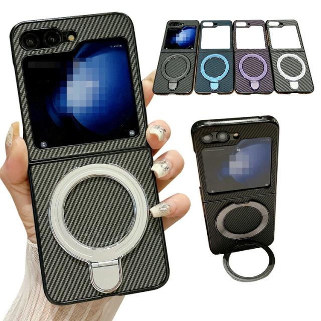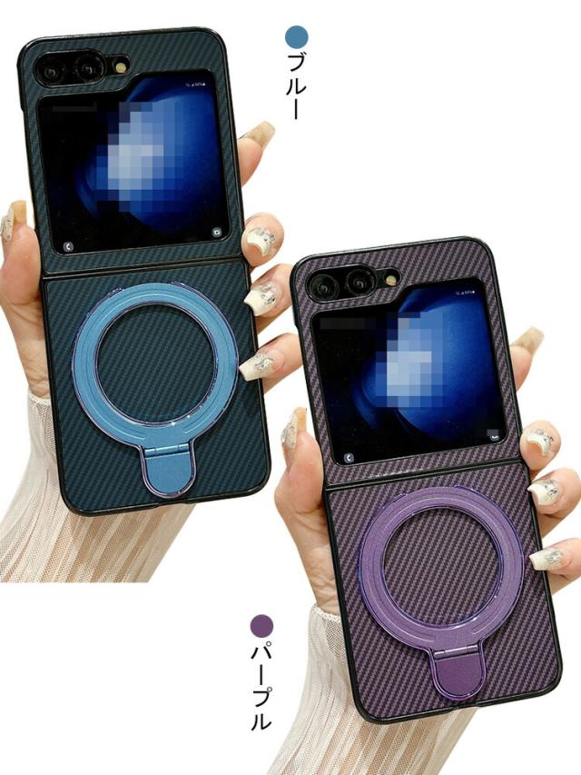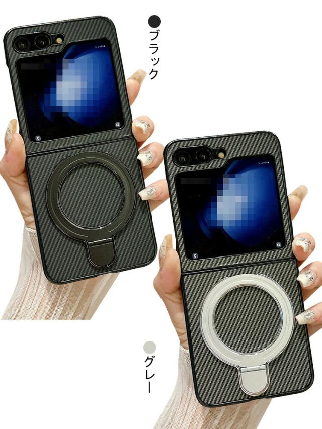 Galaxy Z Flip6 ケース カバー 折りたたみ型 カーボン調 ハードケース 一体型リング付き スタンド機能 Samsung サムスン ギャラクシー Z フリップ6 保護ケース おしゃれ スマートフォン/スマフォ/スマホケース/カバー