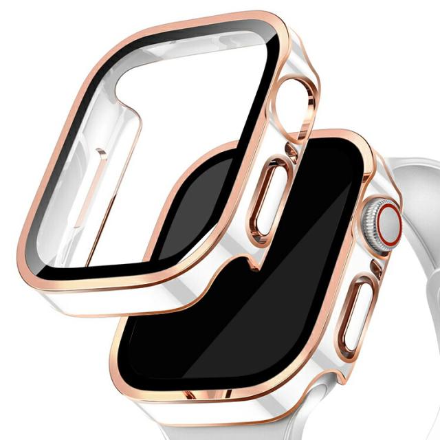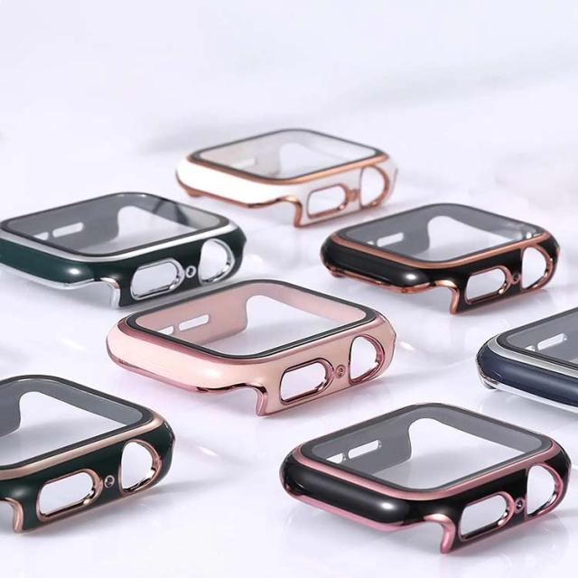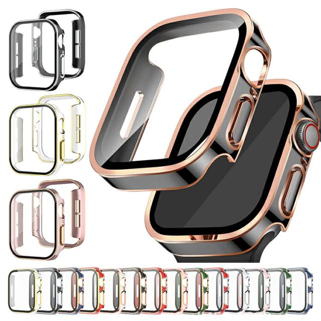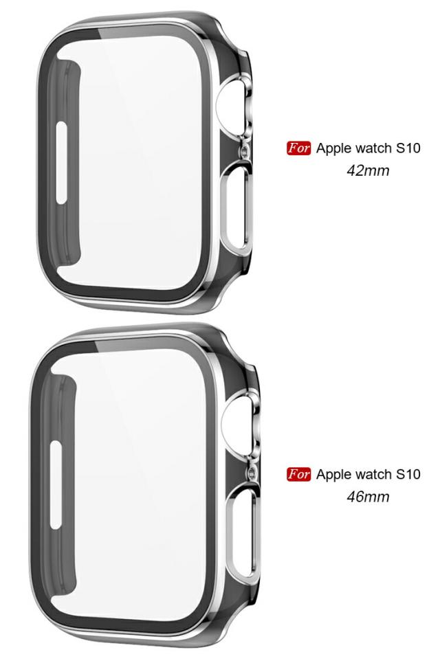 プラスチック+強化ガラス 液晶保護カバー アップルウォッチ10 42mm/46mm 一体型でサイド面のカバーがおしゃれなプラスチックケース appleウォッチ 透明