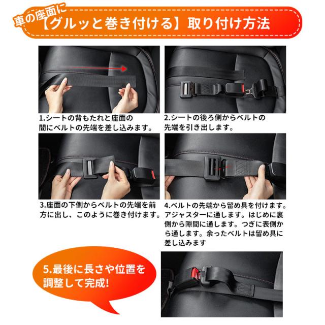背もたれと座面の間にベルトが通る隙間があれば、どんな車でもご使用いただけます。