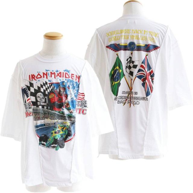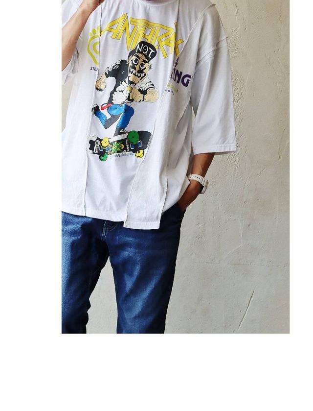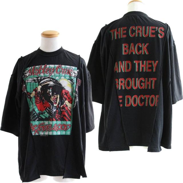 Tシャツ 5分袖 クルーネック メンズ レディース バンドT クレイジー 切り替え リメイク 古着 大きいサイズ カジュアル ヴィンテージ 夏 夏服 パティ
