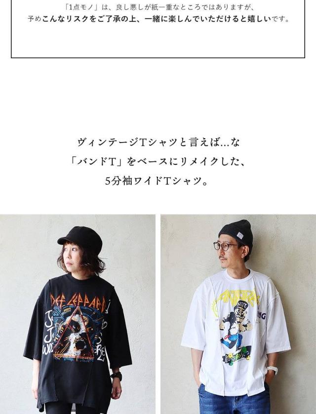 ・ヴィンテージTシャツと言えば…な「バンドT」をベースにリメイクした、5分袖ワイドTシャツ。
