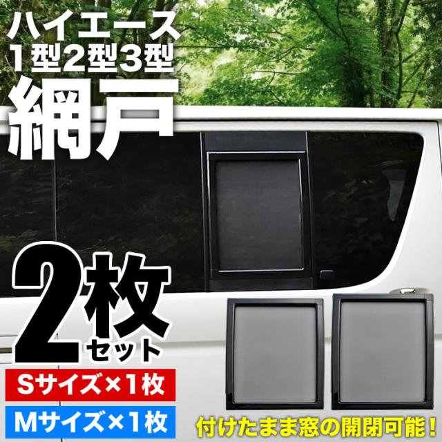 200系 ハイエース 片側スライドドア車 小窓用 網戸 S/M 2枚セット 1型2型3型対応 平成25年12月まで あみ戸 アミ戸