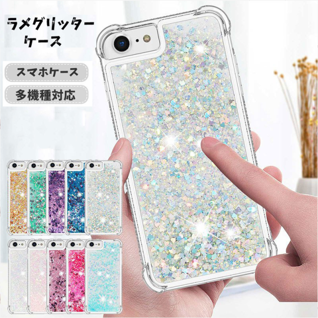 スマートフォンを揺らすたびに、ラメが水の中をサラサラと流れるケース。