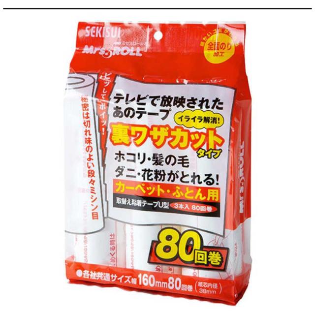 積水マテリアルソリューションズ 裏ワザカット 取替えテープ 粘着ロール 3本 80周巻 ミセスロール J5UT380