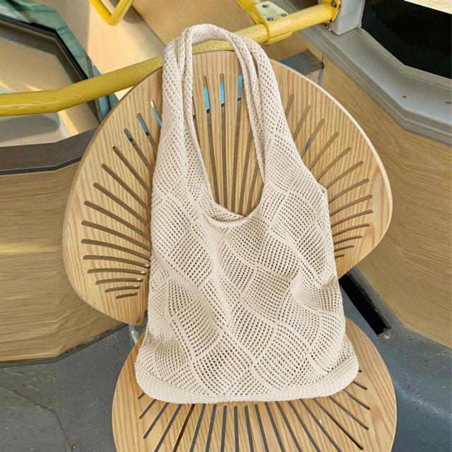 A4サイズも収納可能な大容量タイプ、普段使いでも差し色アイテムとしても大活躍の透かし編みニットバッグ