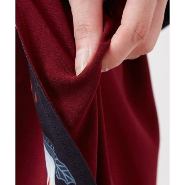 歩いたときにちらりと見える美しい花柄が特徴の「八掛(はっかけ)」のスカート。正面から見るとシンプルな印象で、様々なコーディネートに合わせられます。シワになりにくい生地で、ゆったりと着用いただけます。プリーツに入った柄がちらりと見えて、隠れたお洒落を演出します。銀杏、ブドウ、柘榴(ざくろ)、金木犀をモチーフに、四季を纏い、季節の移ろいを身近に感じられる一枚です。