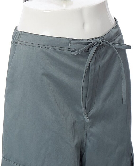 裾部分にはドロストコードが入っており 絞ったスタイルや 伸ばして程よい広さのワイドパンツとしても着用可能!