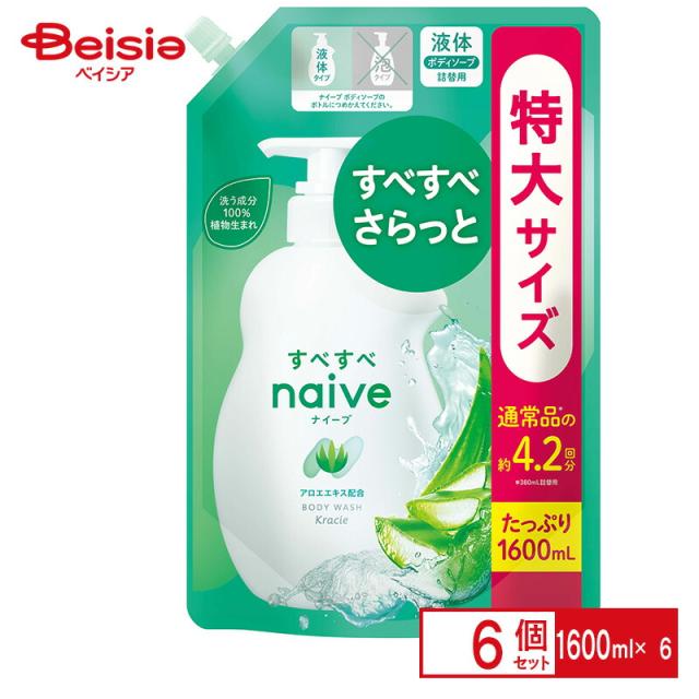 クラシエ ナイーブ ボディソープ アロエエキス配合 詰替用 1600ml×6個 | 泡ポンプ ボディソープ 詰め替え用 大容量 家庭用 石けん アロエ アレルギー敏感肌
