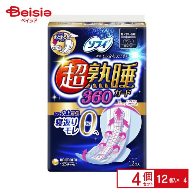 (欠品中)ユニ・チャーム ソフィ超熟睡ガード36cm (12枚入)×4