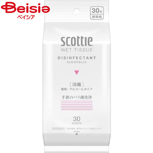日本製紙クレシア スコッティウェットティシュー消毒30枚 | 消毒 ウェットティッシュ 携帯用 消毒シート スコッティ 持ち運び アルコール 清潔 まとめ買い ウイルス対策 エタノール 外出 旅行