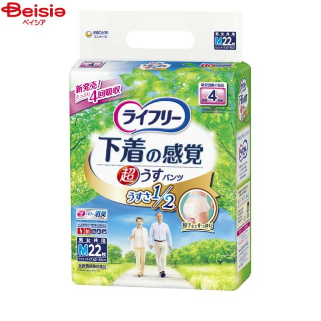 大人用紙おむつ ユニ・チャーム ライフリー 超うす型下着感覚パンツ4回 M 22枚 | 大人用紙おむつ 紙パンツ 介護パンツ パンツタイプ うす型 薄型 下着感覚 Mサイズ 4回吸収 まとめ買い