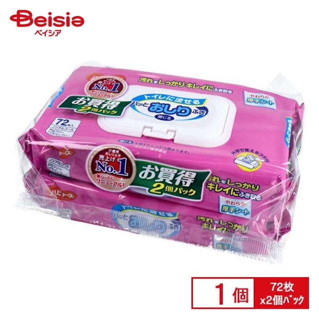 ピジョン ハビナース トイレに流せるパッとおしりふき 72枚×2個