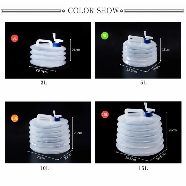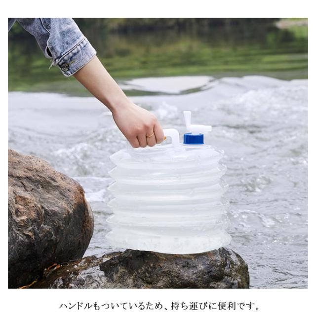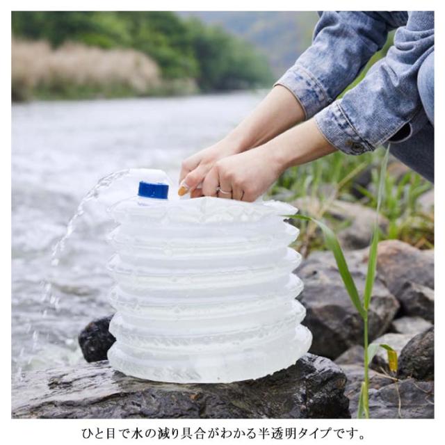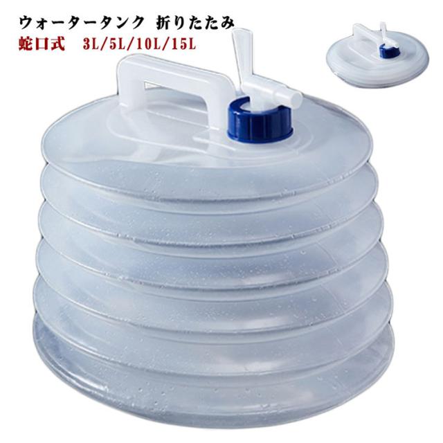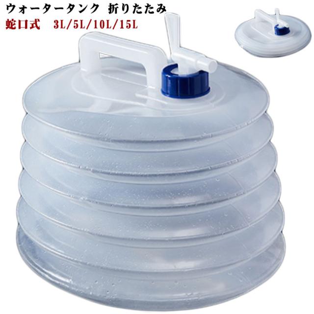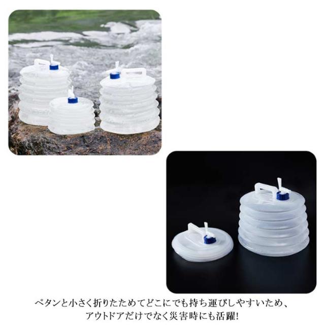 | ウォータータンク 折りたたみ 蛇口式 3L/5L/10L/15L 蛇口コックが付いていて、簡単に水の出し入れができます。 ひと目で水の減り具合がわかる半透明タイプです。 ハンドルもついているため、持ち運びに便利です。 ペタンと小さく折りたためてどこにでも持ち運びしやすいため、アウトドアだけでなく災害時にも活躍! | |