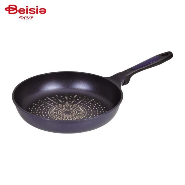 | 商品特徴 | ●丈夫で軽量。キズにも強い。●取っ手がお手入れしやすい一体型。●ガス火専用。ダイキャスト製。●内面ダイヤモンド粒子配合。内面3層。ブルーダイヤモンドコート。●金属ヘラも使える強力コーティング。●フライパン内部に出っ張り(リベット)がないので、洗いやすく、汚れがたまらない。 |