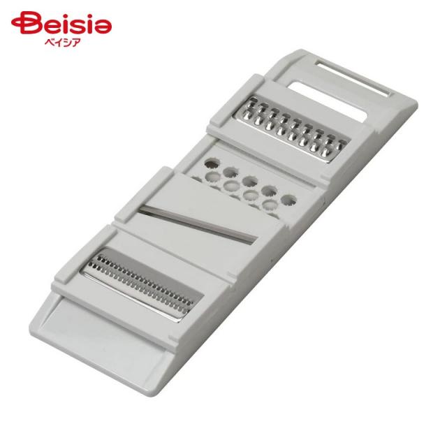 | 商品特徴 | 本体は表面が凹凸になっているので、材料がすべりやすく作業がスムーズです。ぶら下げられるフック穴付きなので、収納もすっきり。清潔感のあるホワイトを基調としたシンプルなデザインで、統一感のあるキッチンに。4種類のカセットを付け替えて作業ができるカセット式。 |