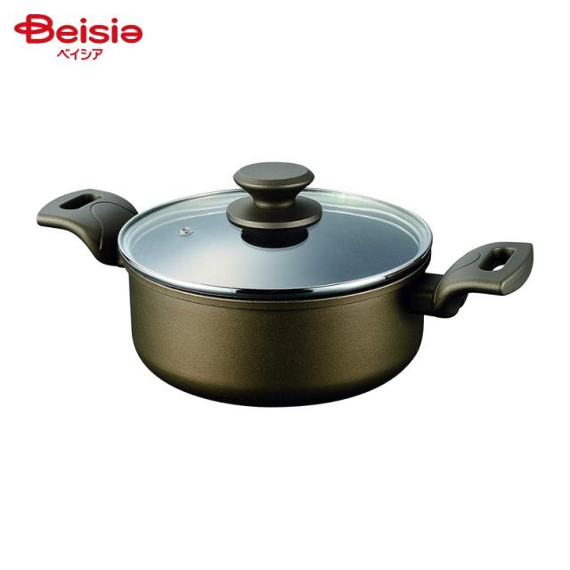 パール金属 ロングライフメガストーン IH対応ガラス蓋付両手鍋20cm HB-5511