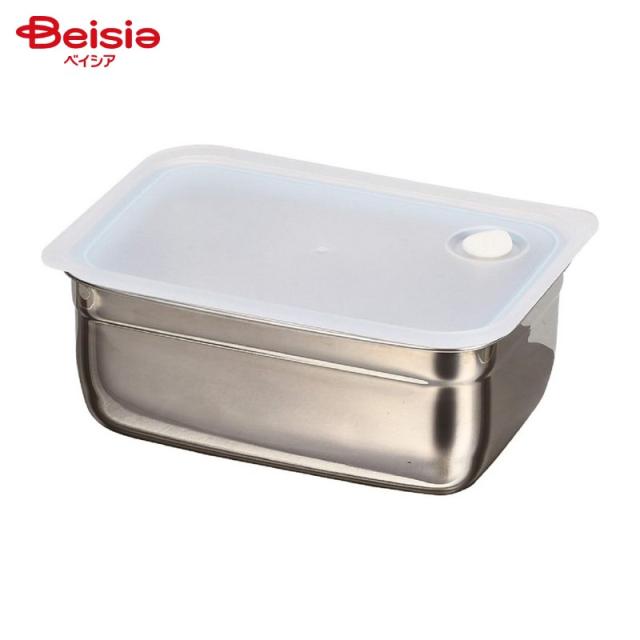 | 商品特徴 | 傷や汚れが付きにくいステンレス製保存容器です。常備菜やおかずの作り置きなどを入れるのに最適な大きめのサイズ1.8Lです。ニオイ移りや色移りもしにくいので、キムチやマリネなども安心して入れていただけます。フタはバルブ付きなので、しっかりと密閉され、ニオイや液体漏れを防いでくれます。フタとパッキンは一体化しているので、お手入れも簡単です。別サイズと組み合わせてすっきり収納できるサイズ設計なので、冷蔵庫の中をきれいに整頓できます。 |