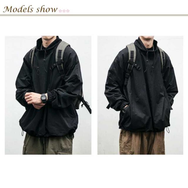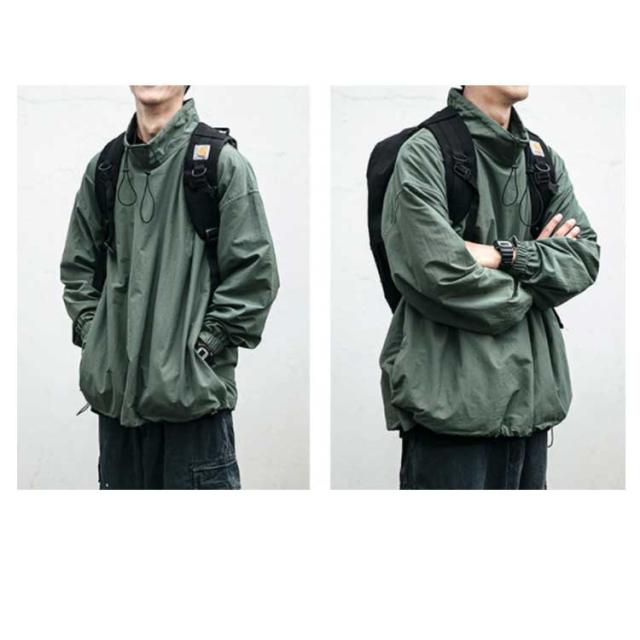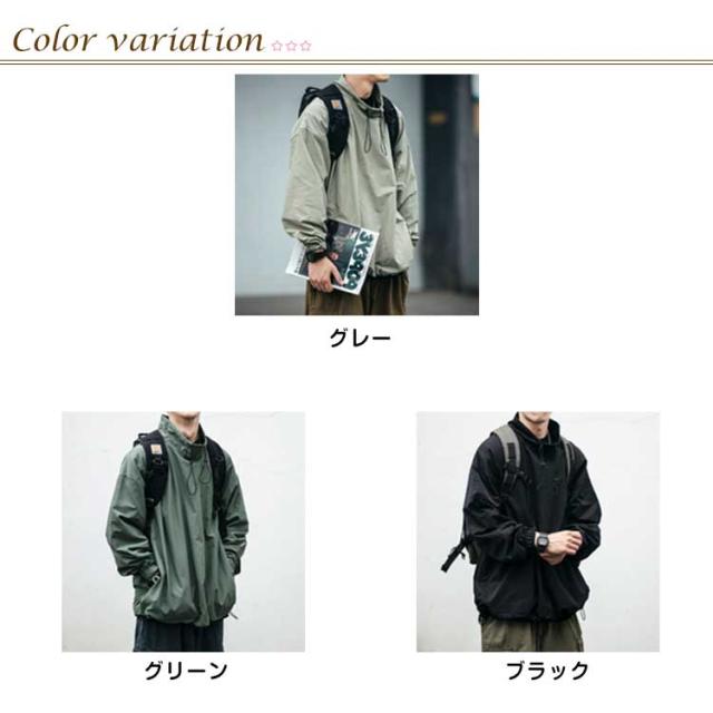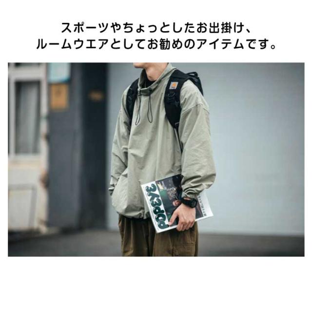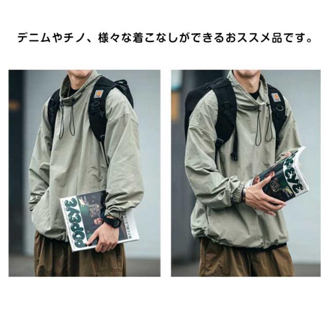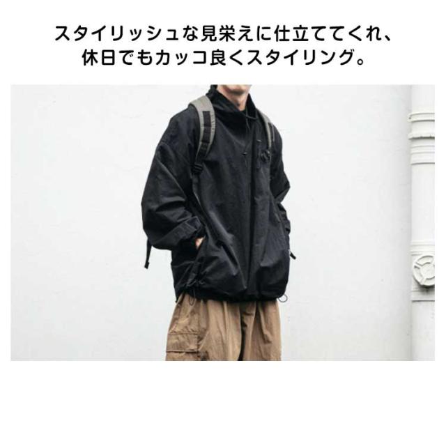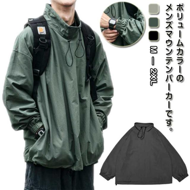 トップス マウンテンパーカー 作業着 春秋 メンズ プルオーバー ウインドブレーカー 長袖 防寒 スタンドカラー ハイネック ポケット付き 無地 登山 かっこいい アウター