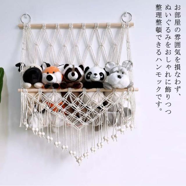 | お部屋の雰囲気を損なわず、ぬいぐるみをおしゃれに飾りつつ整理整頓できるハンモックです。 子供部屋やリビングがすっきりとし、お気に入りのぬいぐるみをいつでも眺められます。 ラックの空間を有効活用できるぬいぐるみ収納。 ナチュラルな素材感がお洒落♪ 特別な工具は不要で、数分で壁に取り付け可能。 高品質の素材を使用し、小さなお子様がいるご家庭でも安心して使用できます。 耐久性に優れ、たくさんのぬいぐるみをしっかりと支えます。 おもちゃの収納だけでなく、インテリアとしてもお部屋を彩ります。 | |