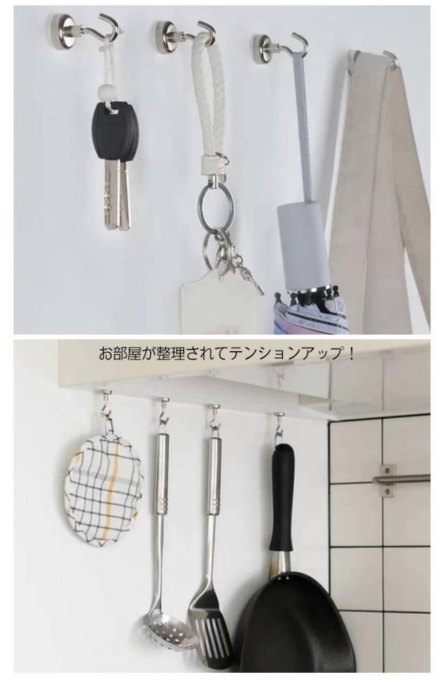 | 超強力マグネットフック 吊り下げも横掛けも自由自在! 場所を選ばず、付けたいところに設置ができる♪ キッチン、玄関をはじめ、職場オフィスにも! 冷蔵庫や洗濯機、デスクに設置すると便利! お部屋が整理されてテンションアップ! お得な10個セット、幅広シーンで大活躍する。 | |