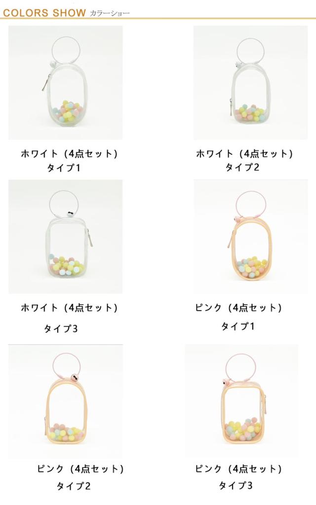 | サイズについての説明 | 4点セット内容:透明ポーチ+ポンポン+リング+鈴 ※サイズ表の実寸法は商品によって1-3cm程度の誤差がある場合がございます。 |