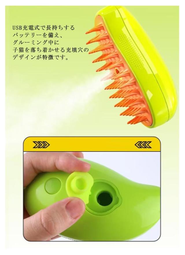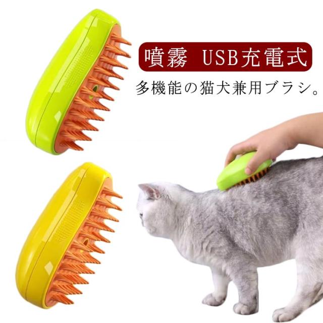 スチームブラシ 抜け毛取り 噴霧 スチームブラシ マサッジー ブラシ USB充電式 犬 猫ブラシ 多機能 静電気防止 換毛期 短毛 長毛 痛くない