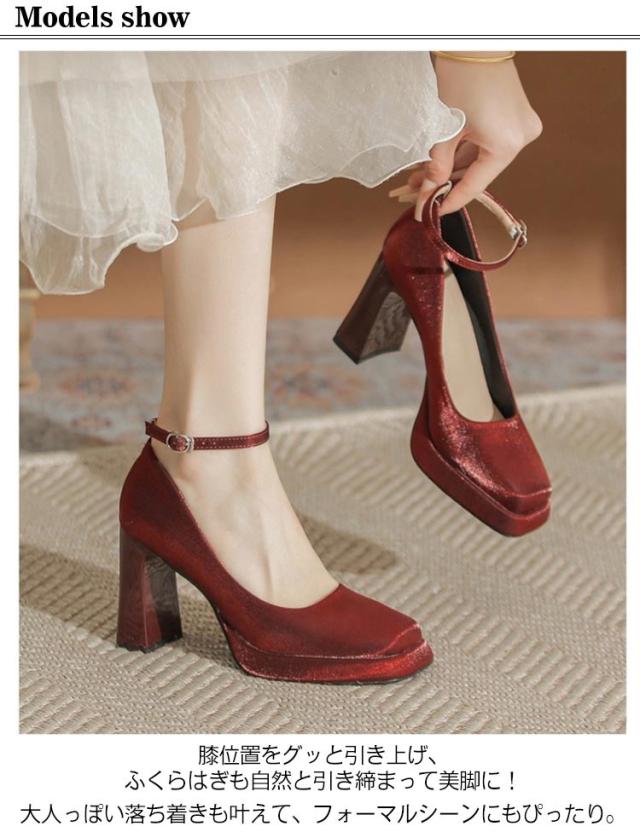 高級感 美脚 きれいめ 美脚 太いヒール レディース ブライダルシューズ ストラップ シューズ パーティーパンプス パンプス 安定感 大人女性 美脚パンプス 痛くない 歩きやすい 小さいサイズ パーティシューズ ハイヒール