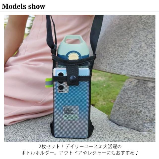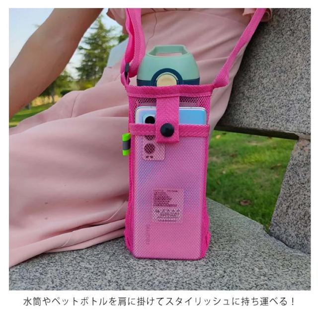 カバー 水筒 2枚セット 2枚セット シンプル メッシュボトルホルダー ショルダー 水筒カバー 子供 大人 スマホポーチ ペットボトルホルダー 水筒キャリアカバー 水筒かばーボトルケース ペットボトルホルダー