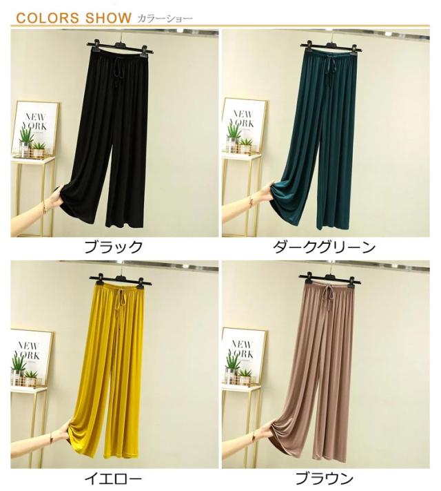 ロング丈 パンツ ワイドパンツ レディース ダンスパンツ リラックスパンツ 接触冷感 夏 フレアパンツ ヨガパンツ ガウチョパンツ イージーパンツ ルームウエア 部屋着 ルームパンツ シンプル 無地 楽チン ゆったり 薄手 ひんやり 春
