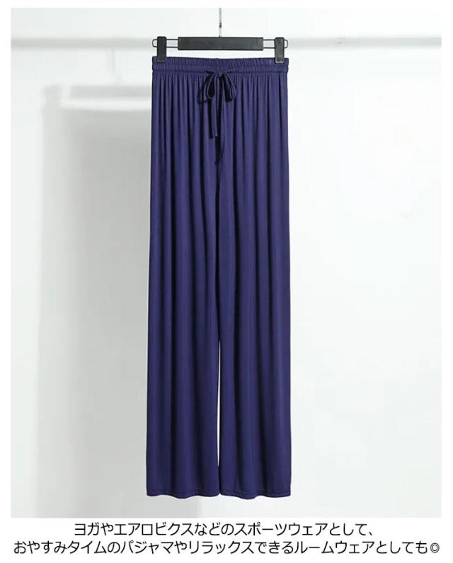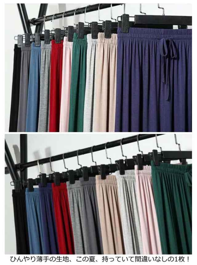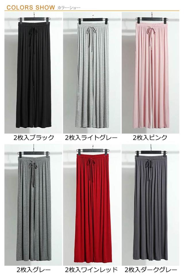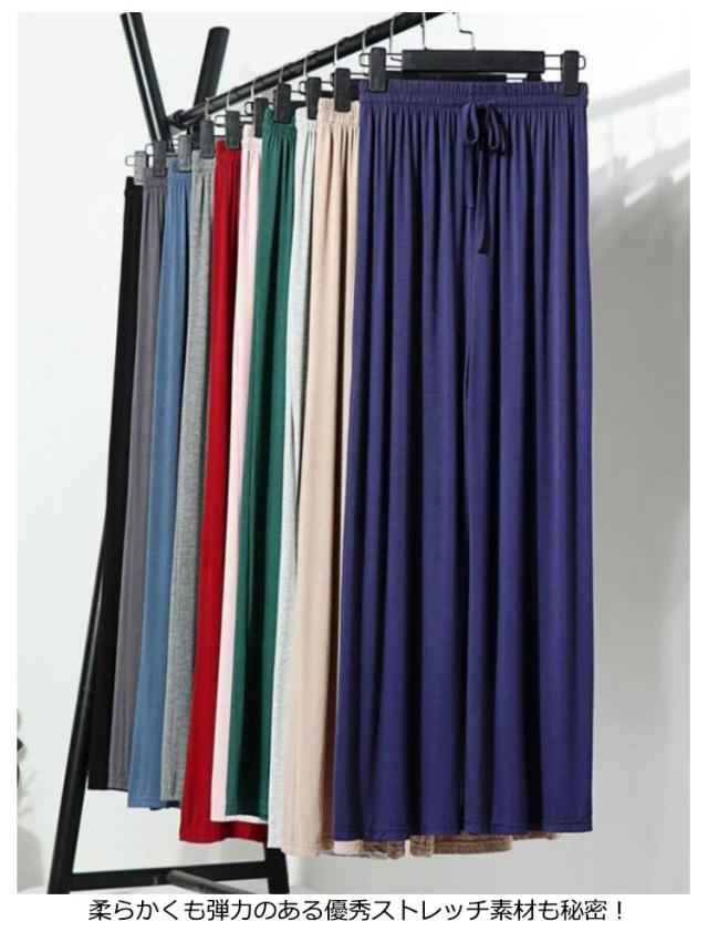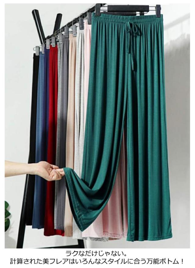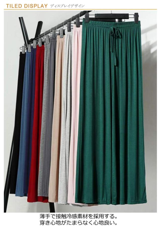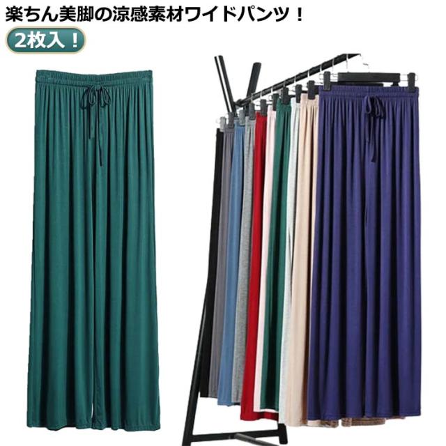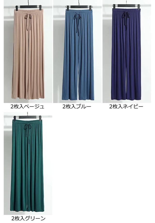 2枚入! ロング丈 ワイドパンツ フレアパンツ イージーパンツ パンツ レディース 夏 ガウチョパンツ ヨガパンツ リラックスパンツ ダンスパンツ 10色選べる!接触冷感 ルームウエア 部屋着 ルームパンツ シンプル 無地 楽チン