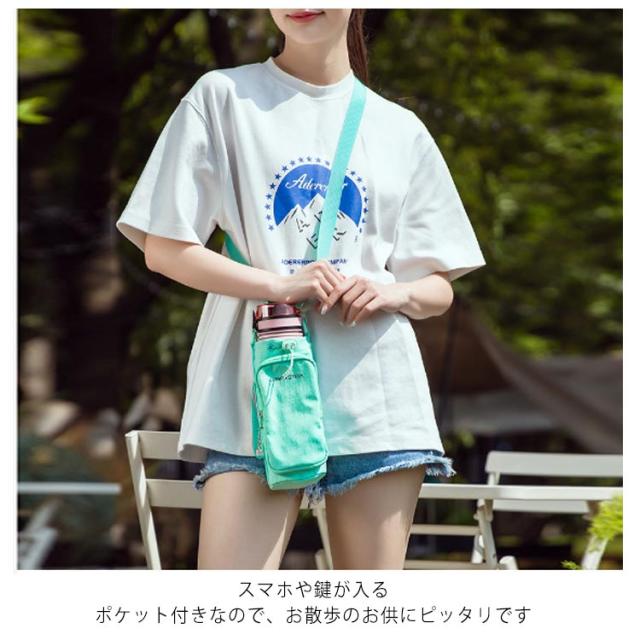 | 調整可能な引き紐が付いているので、ボトルが揺れずにしっかり固定できます。 スマホや鍵が入るポケット付きなので、お散歩のお供にピッタリです ペットボトルカバーは調節可能なショルダーストラップを付きます。 大容量水筒の場合、使用方式を変更して、負担を軽減できます。 肩掛けや斜め掛けや手提げとしてお使いいただけます。 調節可能なショルダーストラップは体型問わず、大人・子供関わらずすべての方々にご利用いただけます。 おしゃれなデザインで日常通勤通学やアウトドアなど、水筒やマイボトルを持ち歩くのは便利です | |