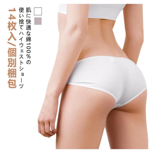 綿100% ショーツ 女性用 100 使い捨てパンツ 14枚入 パンツ セット 個別包装 コットン 綿 使い捨て 生理 ハイウェスト 入院 女性用パンツ 14枚入 出産用 妊娠 介護 消耗品 衛生的 旅行 業務 施術用 安全 安心 携帯用 避難 便利