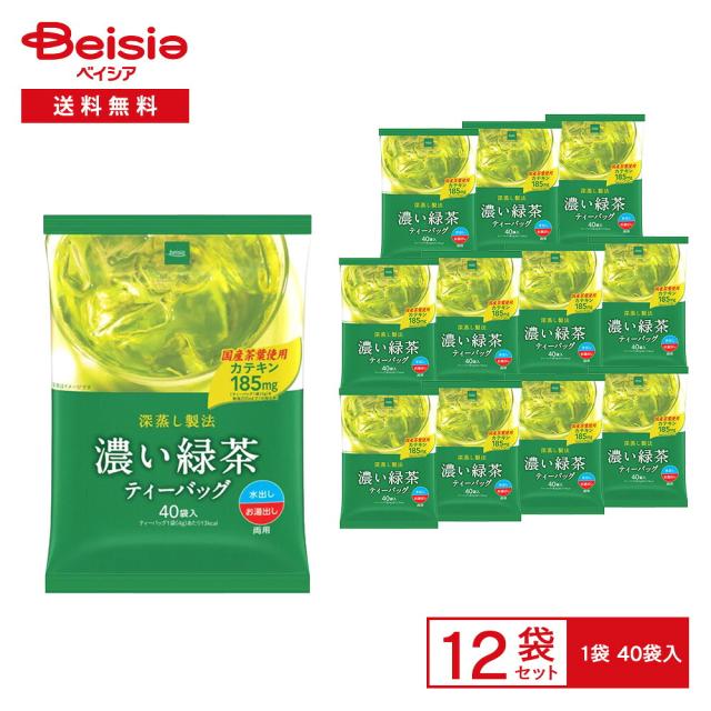 お茶 濃い緑茶 ティーバッグ 40P×12袋 緑茶 まとめ買い ベイシア