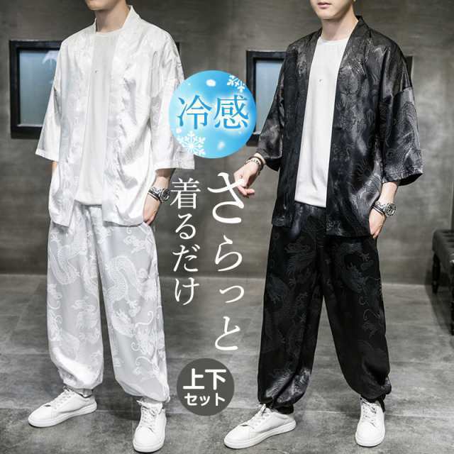 セットアップ メンズ ジャージ 接触冷感 スウェット 上下セット 7分袖 ゆったり 父の日 龍柄 普段着 カジュアル 吸汗速乾 5