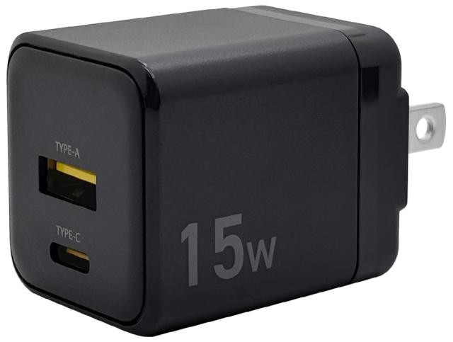 - 単ポート出力:USB Type-C 5V/3A(15W)、USB Type-A 5V/2.4A(12W)