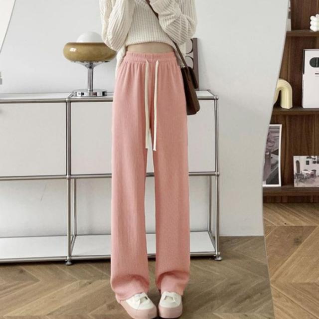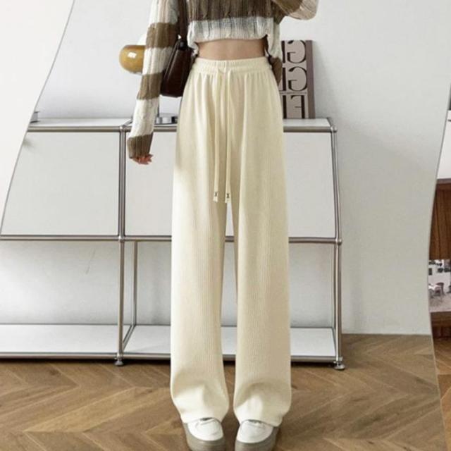 カジュアル ロングパンツ ハイウエスト イージーパンツ 体型カバー リラックスパンツ ゆったり 韓国風ボトムス きれいめ